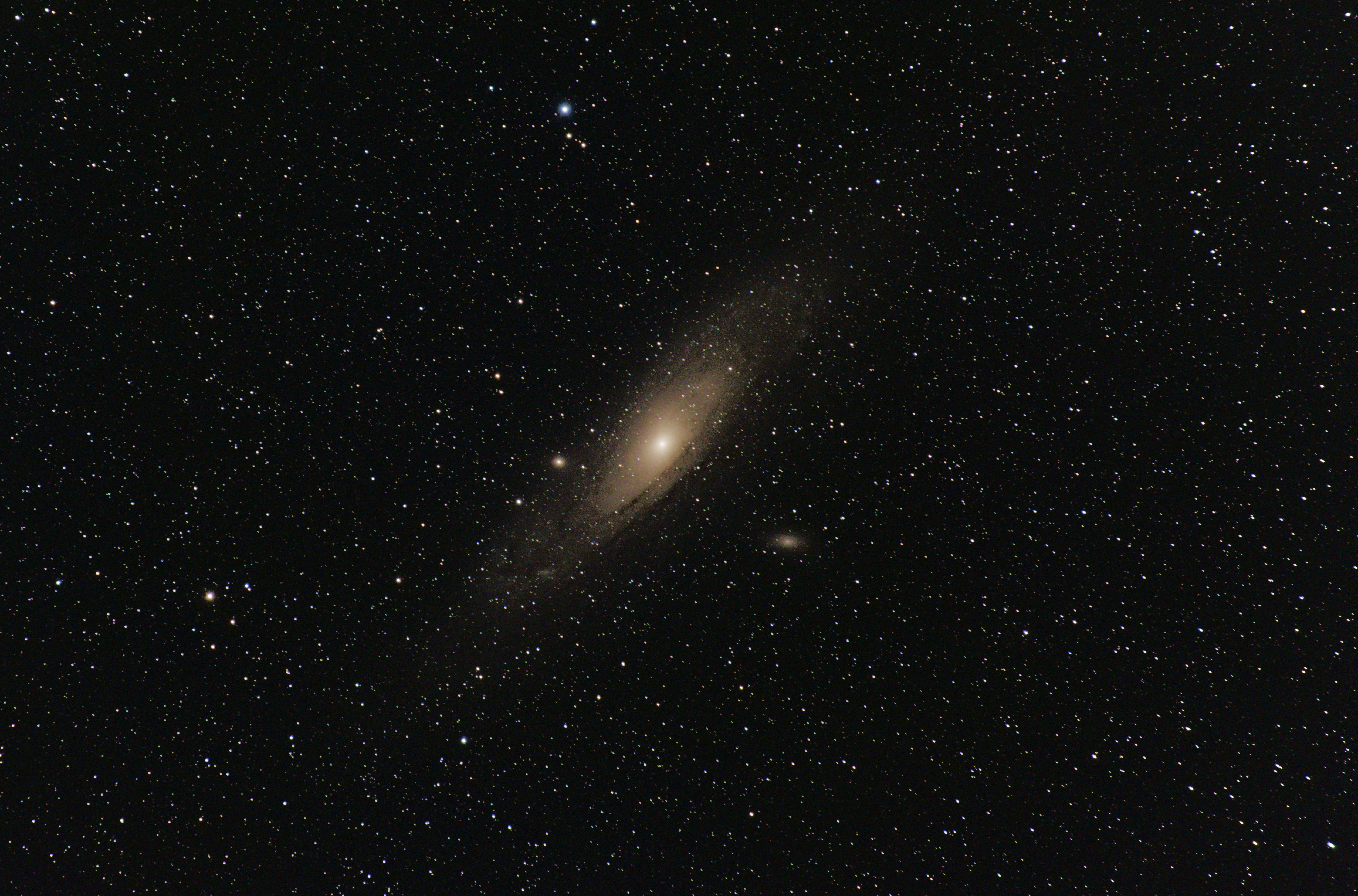 アンドロメダ銀河。 言わずと知れたお隣さん銀河。この写真はOlympusのm4/3機とおまけの300mm相当レンズで撮影したもの。